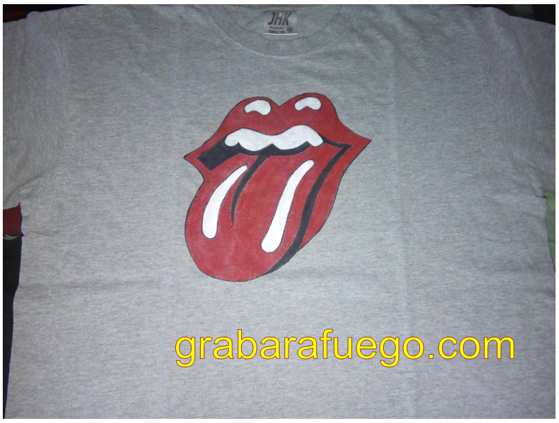 Esta camiseta la pinté para mi hermano hace ya varios años. La hice con pintura acrílica por probar, debió ser de las primeras que pinté. El caso es que al final, aunque quedan resultonas recién pintadas, la pintura acrílica (he de decir que de calidad mediocre…) no está hecha para estos menesteres, así que se fue saltando con los lavados y estaba ya hecha polvo. La repinté encima, con pintura para telas…