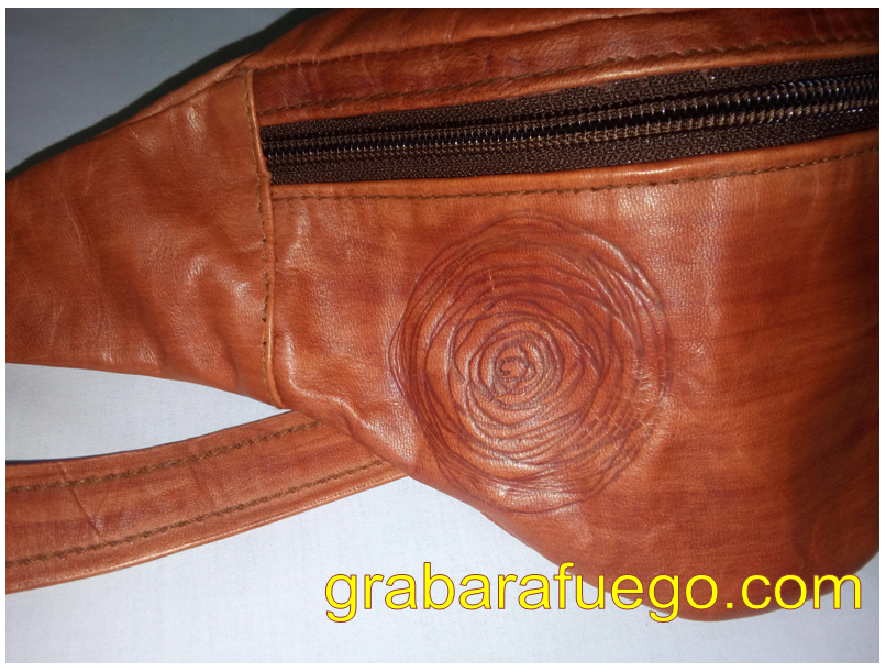 Es este caso, al tener muchas piezas distintas, opté por piel de cabra al natural para poder coserlo a máquina. Una vez cortadas la piezas, hice el trabajo de pirograbado, en la parte trasera de la riñonera, un frase en italiano, «IL TUO AMICO PIKOTAS». En la pieza delantera, un dibujillo que tiene gran significado para el destinatario, del cual no tengo fotos del proceso…
